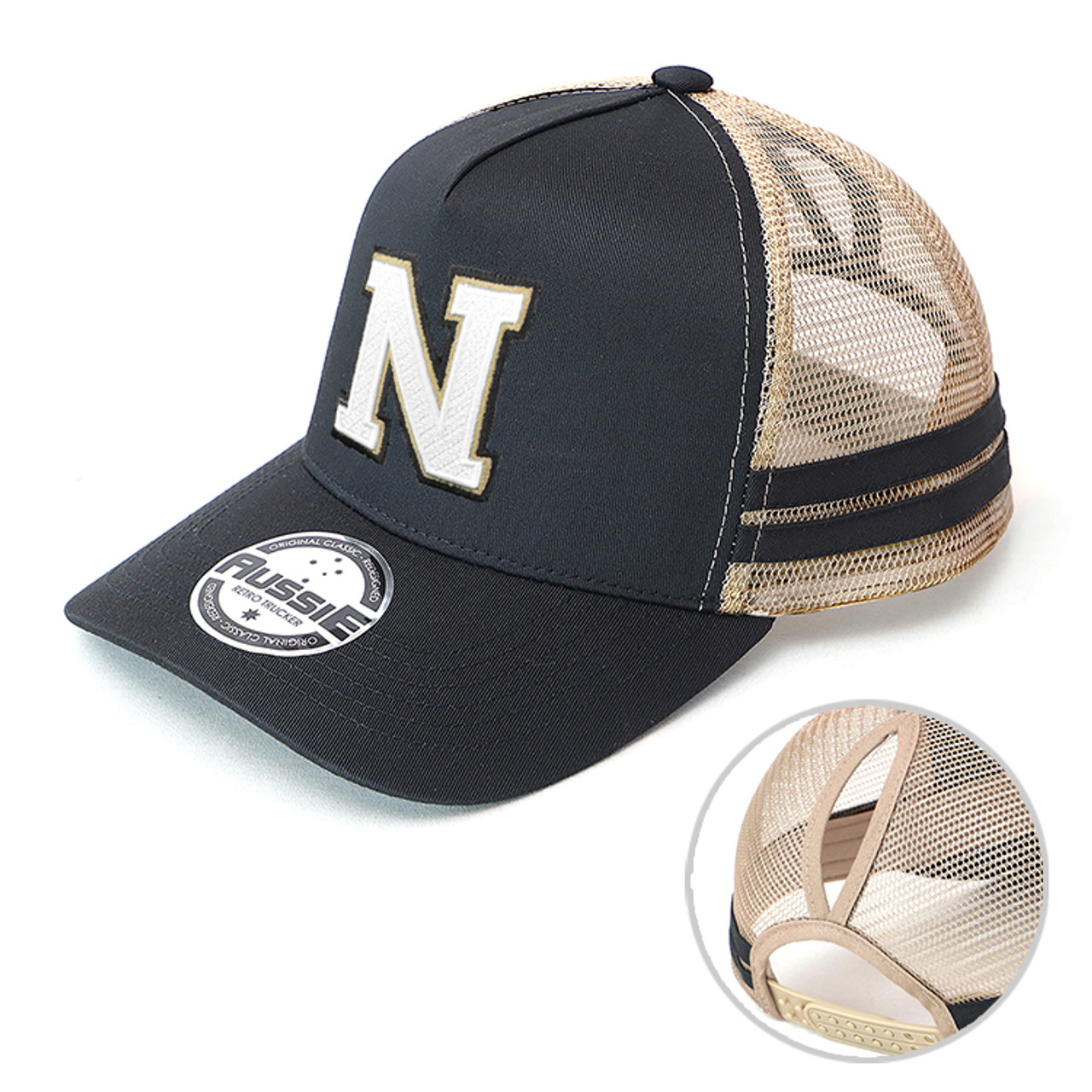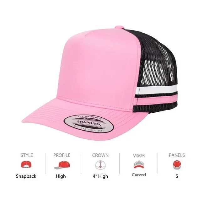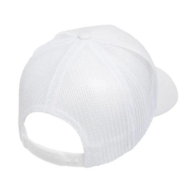 Low profile, five panel cap, internal mesh structure support, flat peak