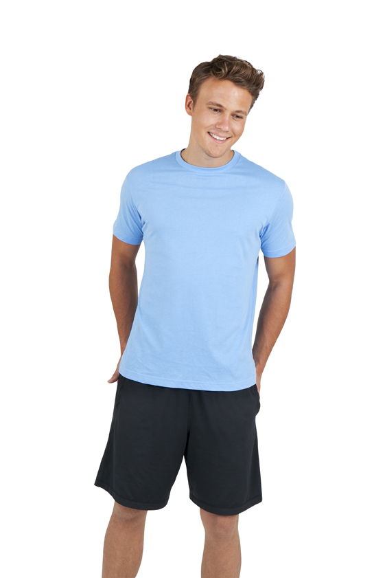 Neck ribbing, side seamed, shoulder to shoulder tape, double needle hems, preshrunk to minimise shrinkage