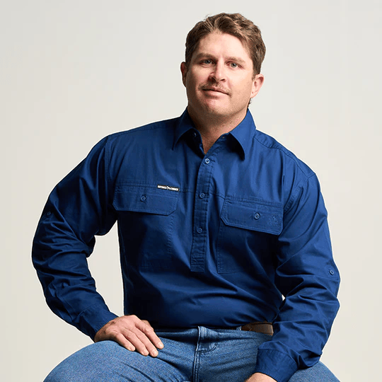 OBCMWS001-NAV KILCOY | Mens Half Button Long Sleeve Work Shirt - Navy