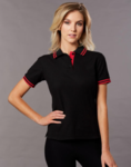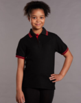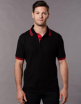 Short sleeve ribbed collared polo shirt, 3 button placket, tonal corozo buttons, Side seamed, double needle hems, preshrunk to minimise shrinkage, moisture wicking, quick drying