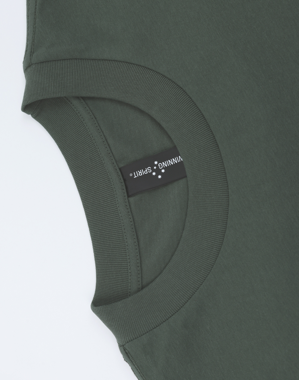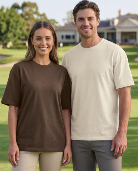 Neck ribbing, side seamed, neck seam twin needle stitch, shoulder to shoulder tape, double needle hems, preshrunk to minimise shrinkage